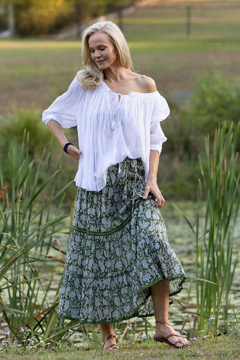 Sister to the Clementine and Matilde, the Ainsley Skirt carries the same quiet artistry – an ode to slow fashion and simple beauty.