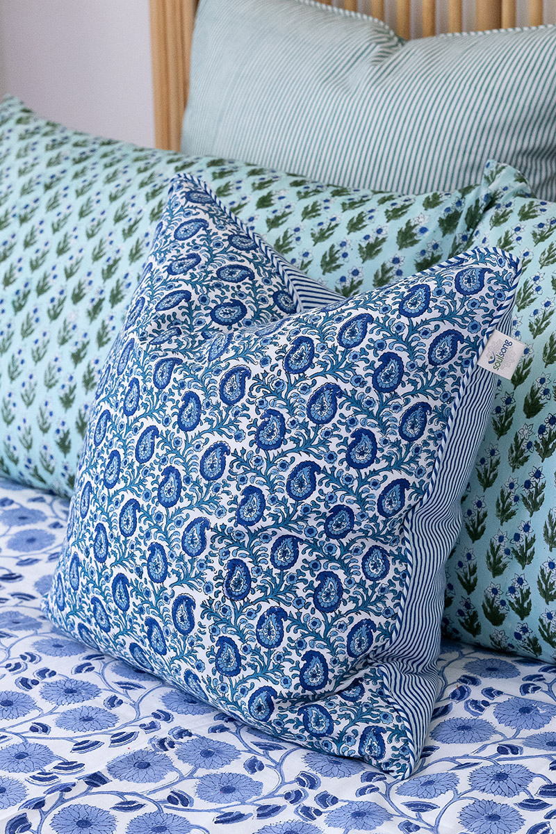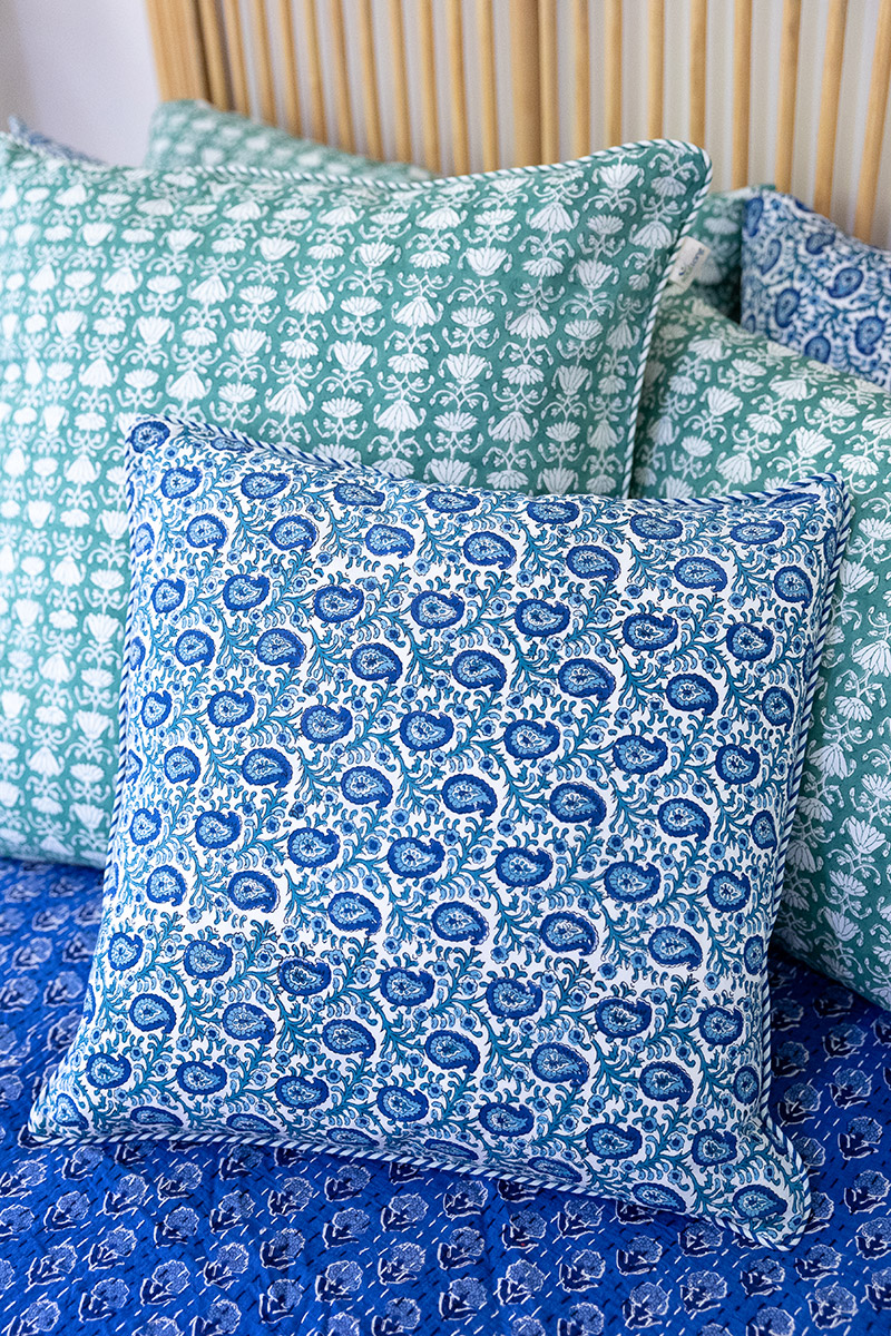 Infused with the quiet beauty of hand craftsmanship, our block-printed Cushion Covers bring a gentle, soulful warmth to any space. Each piece is printed by skilled artisans using traditional wooden blocks – a slow, intentional process that leaves every motif with its own subtle character.
