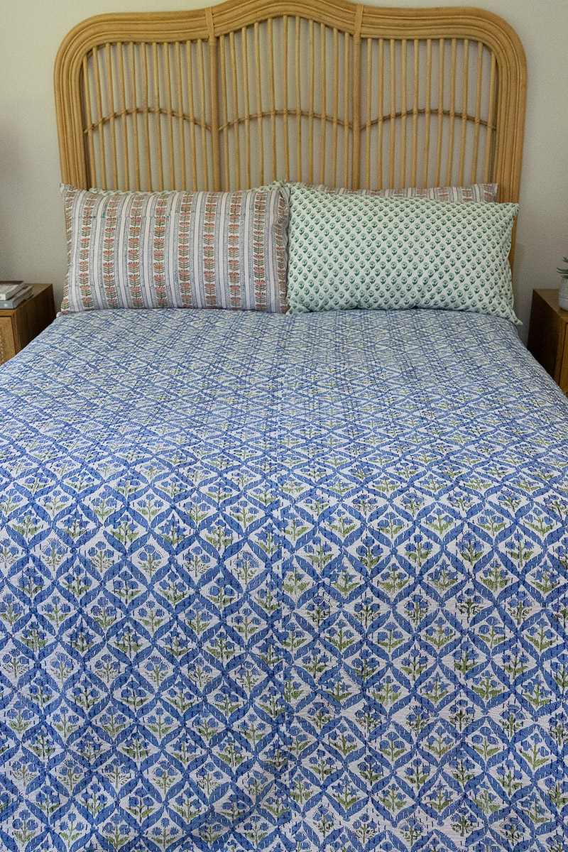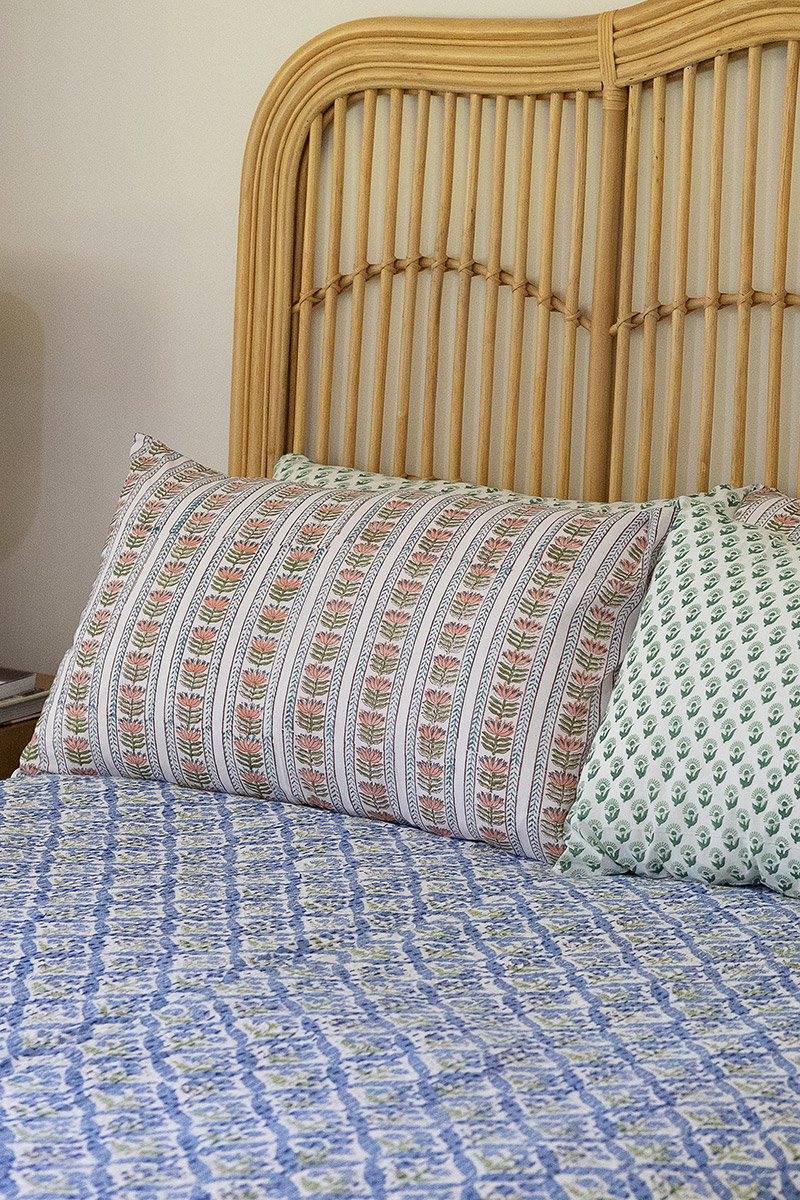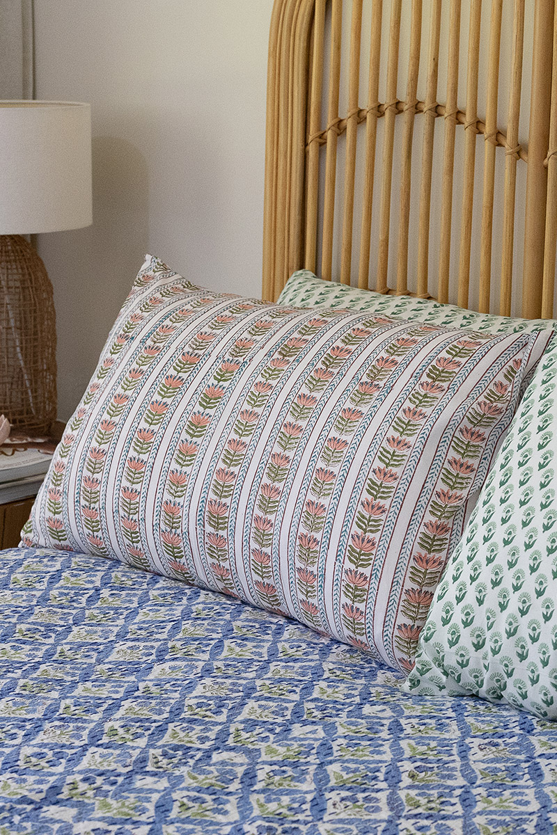 Infused with the quiet beauty of hand craftsmanship, our block-printed pillow slips bring a serene, soulful touch to your bedding. Each one is printed by skilled artisans using traditional wooden blocks – a slow, intentional process that leaves every motif with its own natural character.