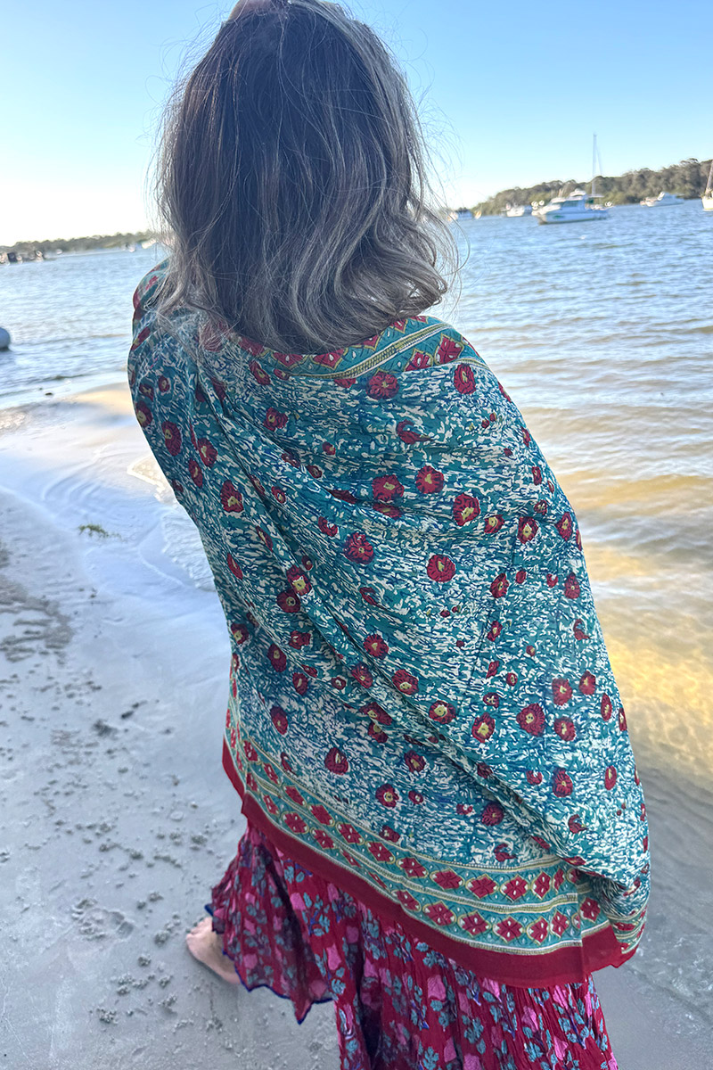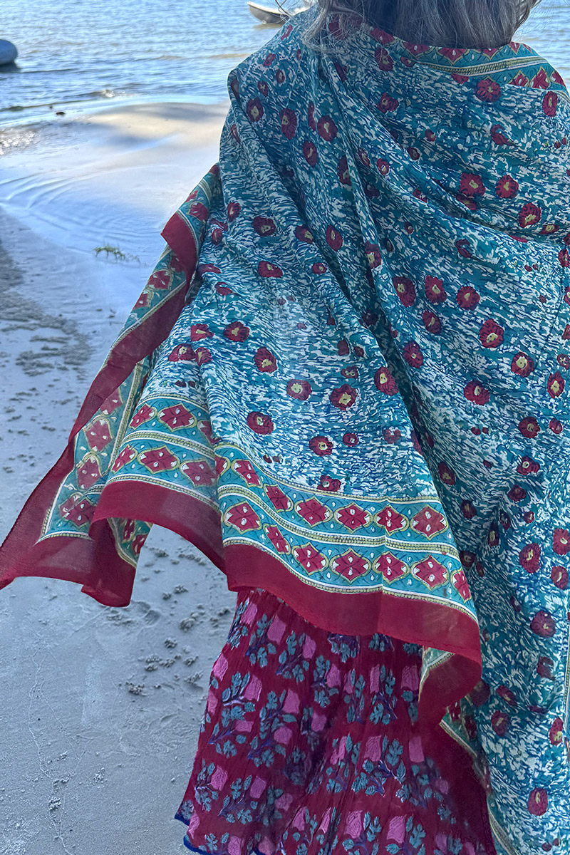 A few of the countless ways to make it yours: by the beach or pool, as a scarf or head wrap, picnic throw, light sheet for an afternoon nap, body wrap, baby swaddle, tablecloth, curtain, meditation shawl, yoga strap, or savasana cover at the end of practice.